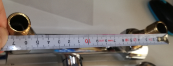 ↓日本製混合水栓では間隔調整範囲が広く、たぶん150mm~250mmぐらいまで可変なのではないだろうか.