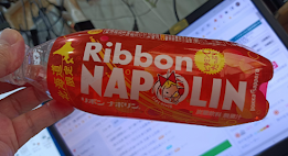 干天の慈雨とばかりに、普段は在っても飲まない「リボン ナポリン」なるものを口にします.リボンシトロンかと思ったが違うんですね.キャラは同じです.糖分うましら~.