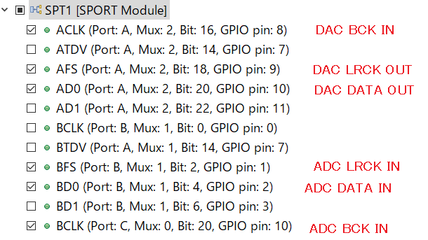 ・BF706のI2Sは、SPORT-AがDAC用、SPORT-BがADC用